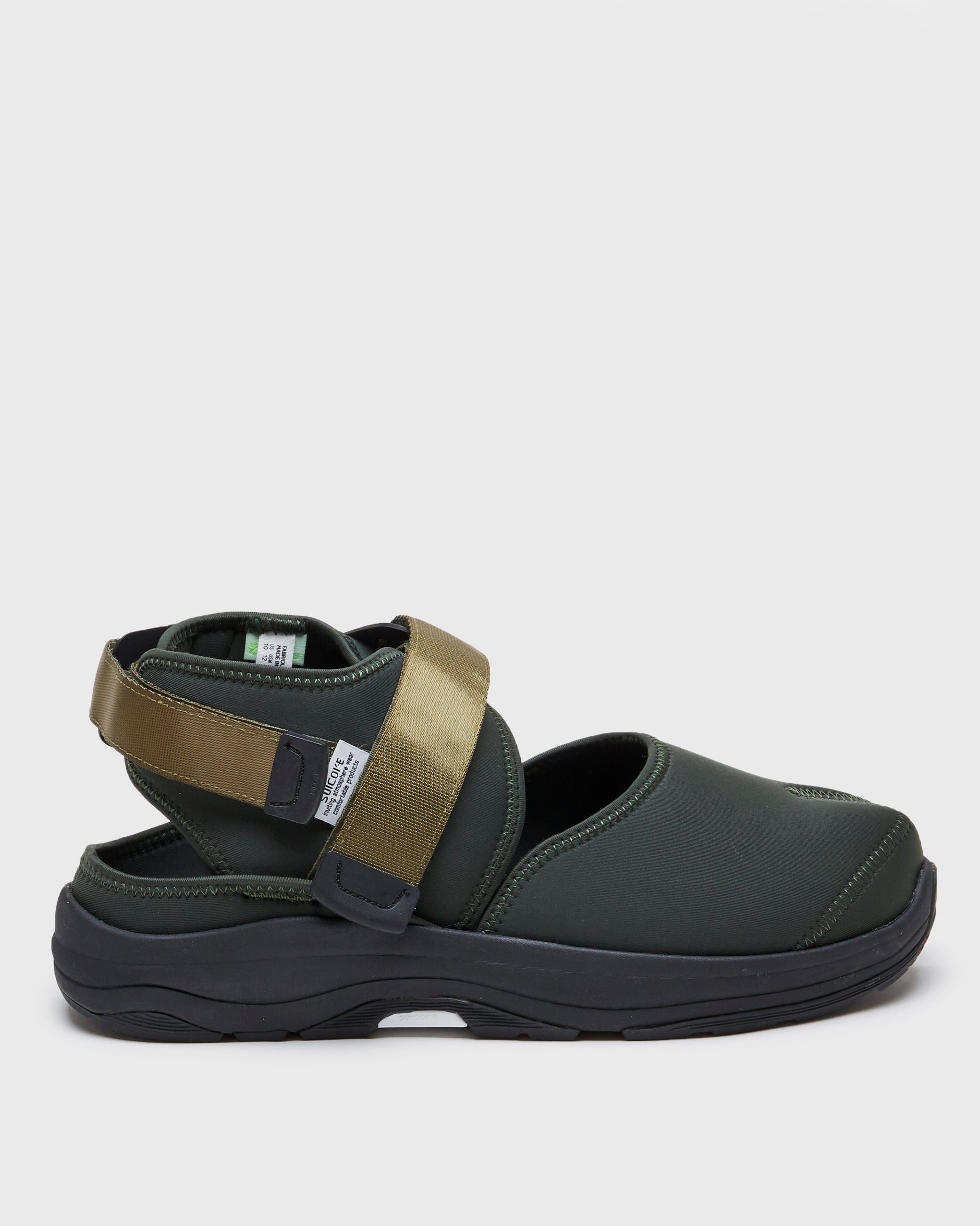 Constructed from a soft neoprene, the silhouette is finished with the SUICOKE original RUNNING outsole, and EVA antibacterial footbed.